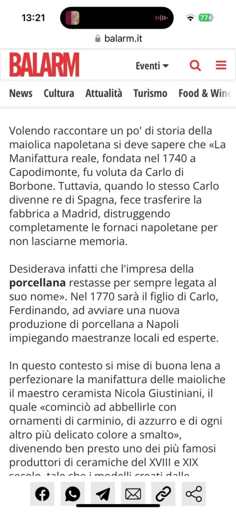 Napoli vanta infatti una tradizione ceramica di altissimo livello, legata a figure storiche come il celebre maestro ceramista Nicola Giustiniani. I modelli creati dalle sue fabbriche nel XVIII e XIX secolo divennero un punto di riferimento, replicati da molte altre manifatture meridionali.