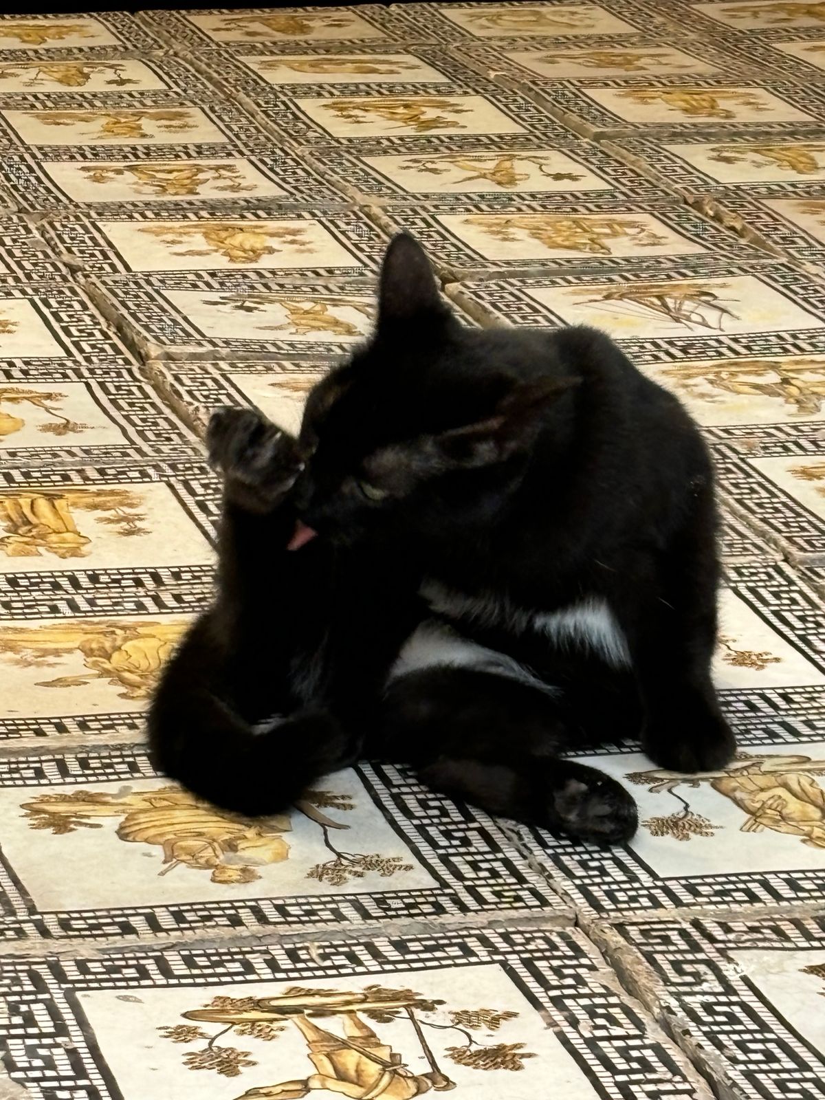 Ogni singola mattonella è un mosaico di colori e disegni, frutto di una maestria artigianale che affonda le radici in una lunga e gloriosa tradizione. Il pavimento non è solo un elemento decorativo, ma una testimonianza materiale della vita, del gusto e delle tecniche dell’epoca.