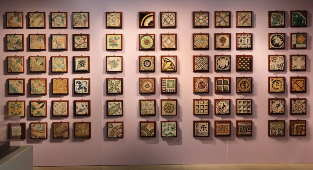 Il curatore Pio Mellina, in sinergia con la Soprintendenza BB. CC. AA. di Palermo, selezionò con cura oltre 270 esemplari di mattonelle antiche siciliane e napoletane risalenti a un periodo storico che spaziava dal Cinquecento all’Ottocento.