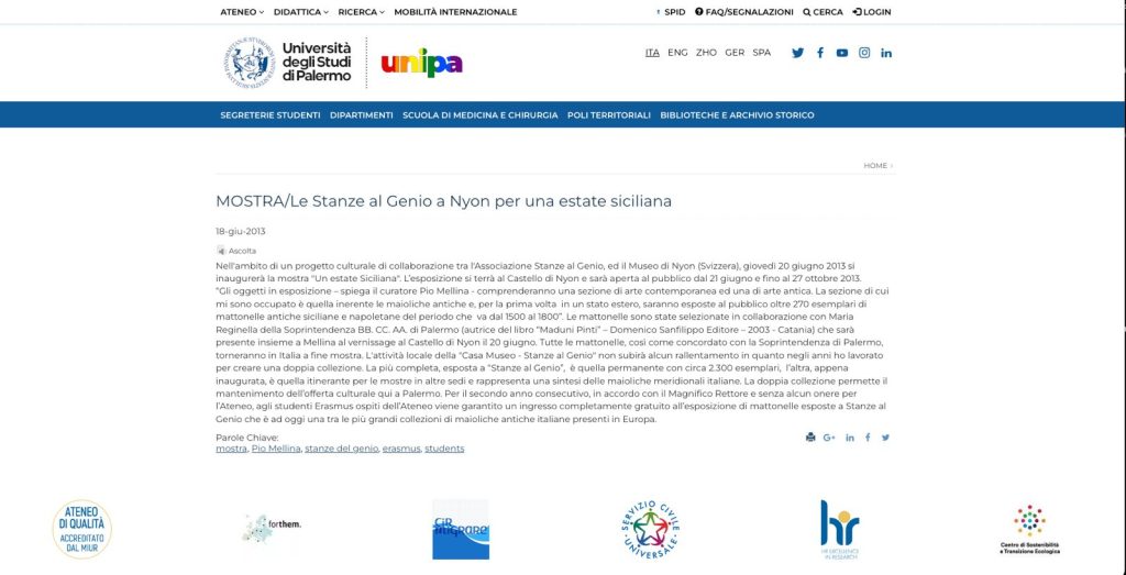 Oggi vogliamo fare un salto indietro nel tempo, precisamente all’estate del 2013, per rivivere un momento eccezionale nella storia di Casa Museo Stanze al Genio: la mostra “Un’Estate Siciliana” al Castello di Nyon in Svizzera.